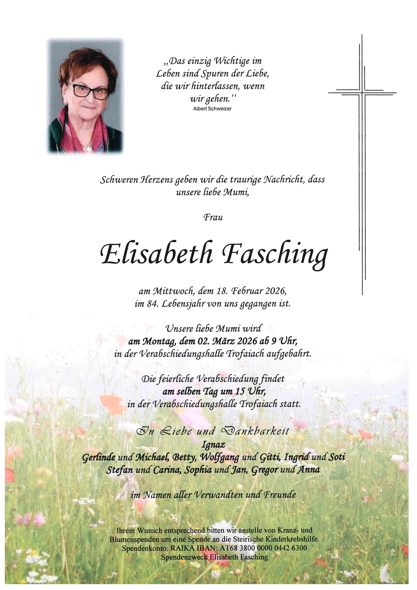 Mein tiefstes Beileid möchte ich aussprechen zum Tod eurer lieben Gattin und Mutter