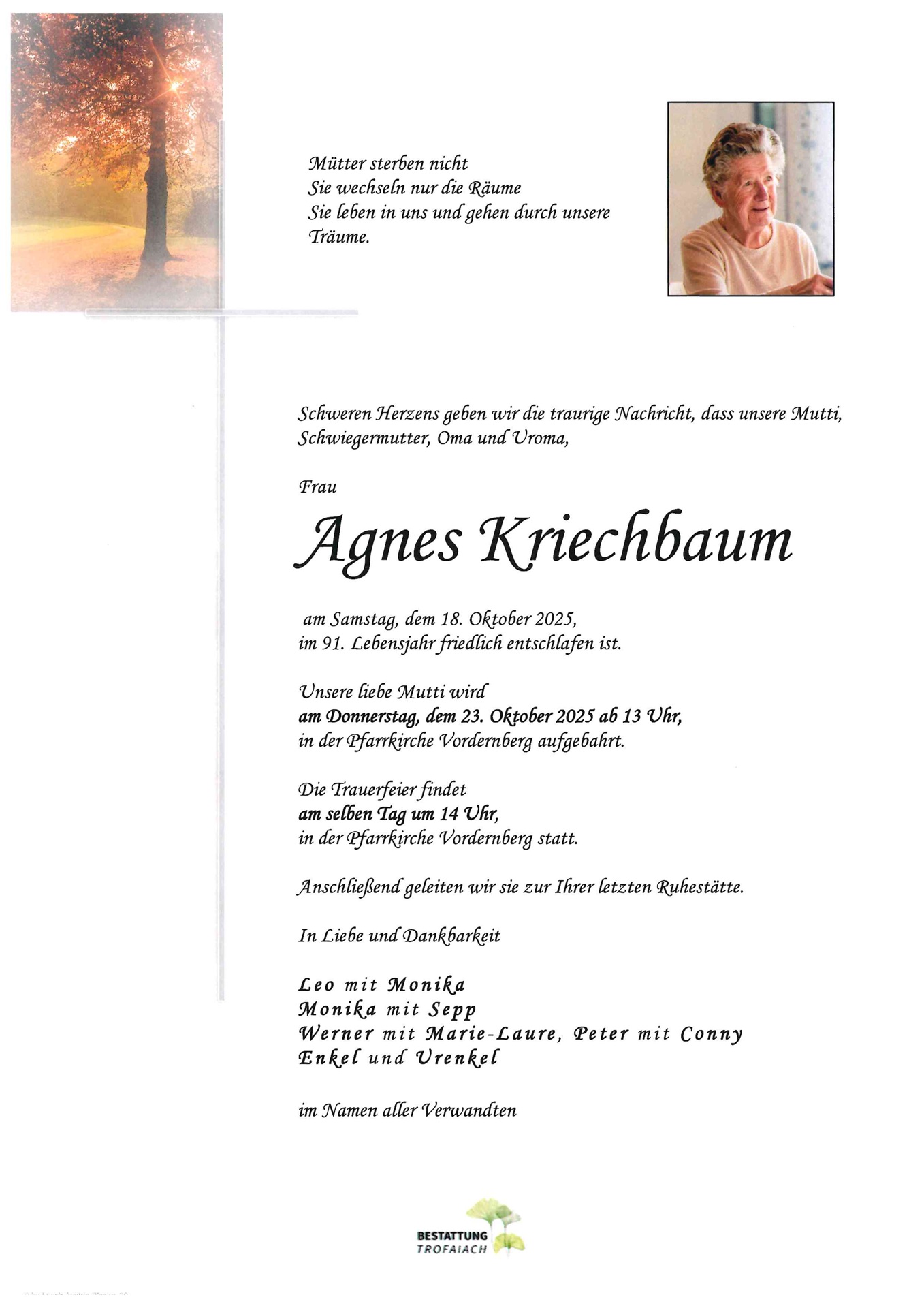 Liebe Frau Kriechbaum ruhen Sie in Frieden.