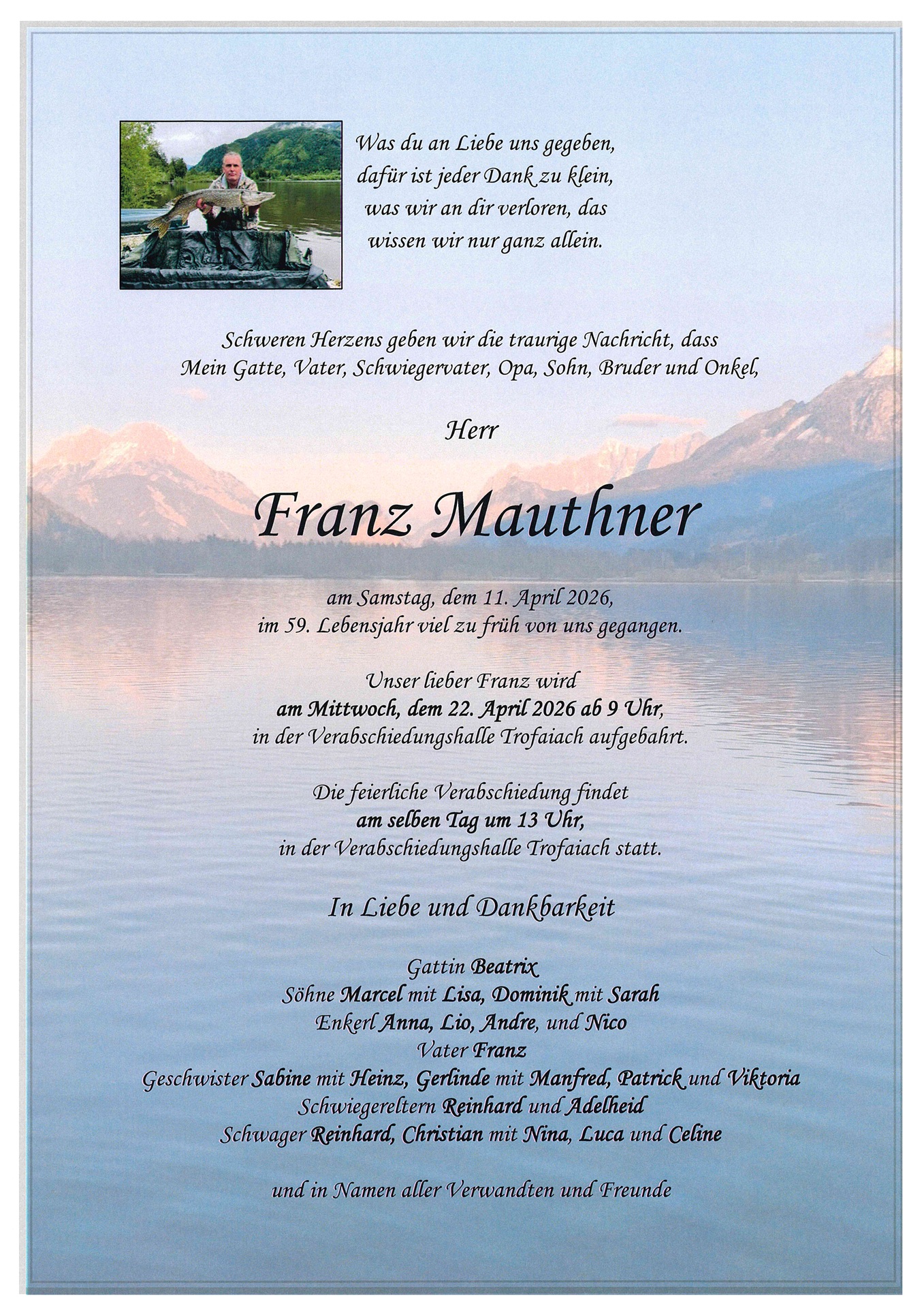 R.I.P. Franz Mein herzlichstes Beileid der Familie! Romana Ortner 🙏😥🕯️ says: